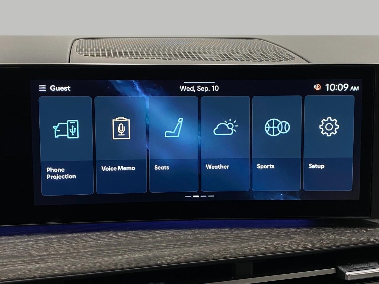 - Radio: AM/FM/HD Bose Premium Audio System -inc: 12 speakers including subwoofer, external amplifier, 12.3" wide touchscreen, Apple CarPlay and Android Auto, Bluetooth® hands-free w/wireless audio streaming, dynamic voice recognition, USB connectivity, SiriusXM, Blue Link+ connected car system, over-the-air updating capability, navigation system including traffic flow w/incident data via HD Radio (HERE) and rear seat quiet mode