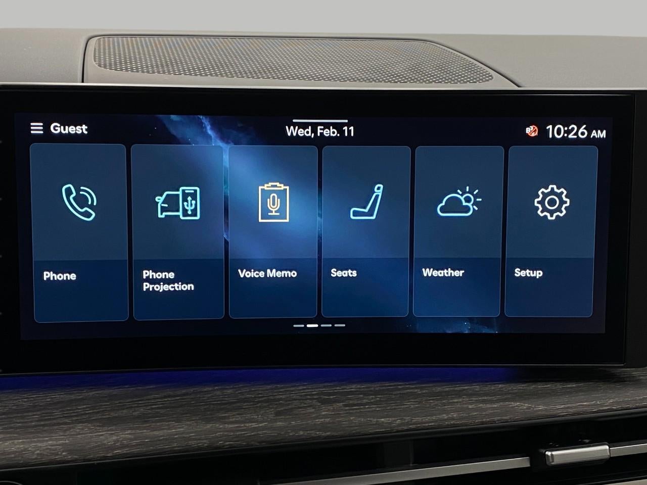 - Radio: AM/FM/HD Bose Premium Audio System -inc: 12 speakers including subwoofer, external amplifier, 12.3" wide touchscreen, wireless Apple CarPlay and Android Auto, Bluetooth® hands-free w/wireless audio streaming, dynamic voice recognition, USB connectivity, SiriusXM, wifi hotspot, Blue Link connected car system, navigation system including traffic flow w/incident data via HD Radio (HERE), OTA updates and rear seat quiet mode